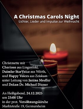 Dann ist die „Christmals Carols Night“, eine etwas andere Christmette in der Germersheimer Versöhnungskirche, genau IHRE Veranstaltung.