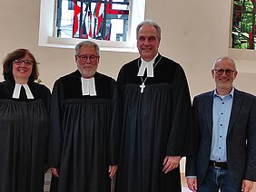 vlnr.: Pfarrerin Christine Klein-Müller, Peter Horn, Dekan Dr. Michael Diener, OKR Dr. Claus Müller | Foto: B. Schönhöfer