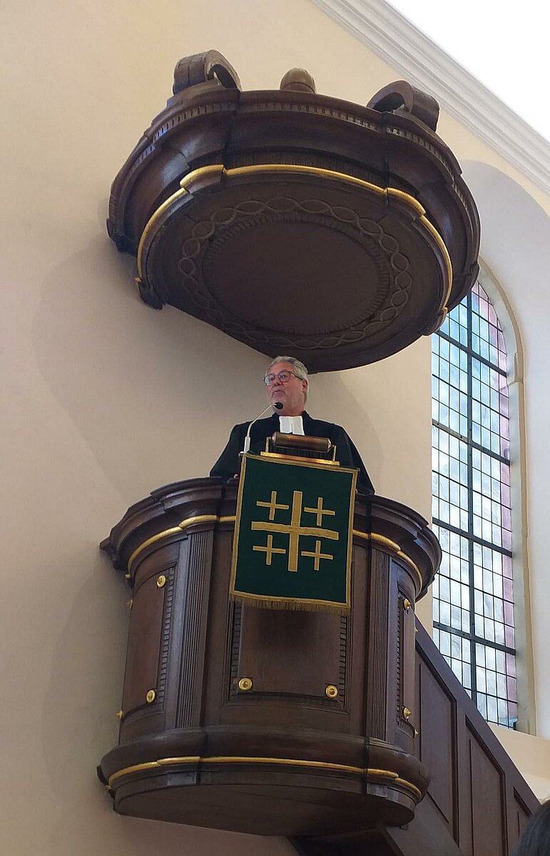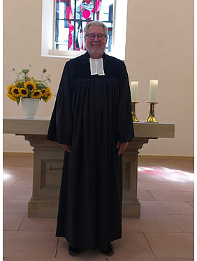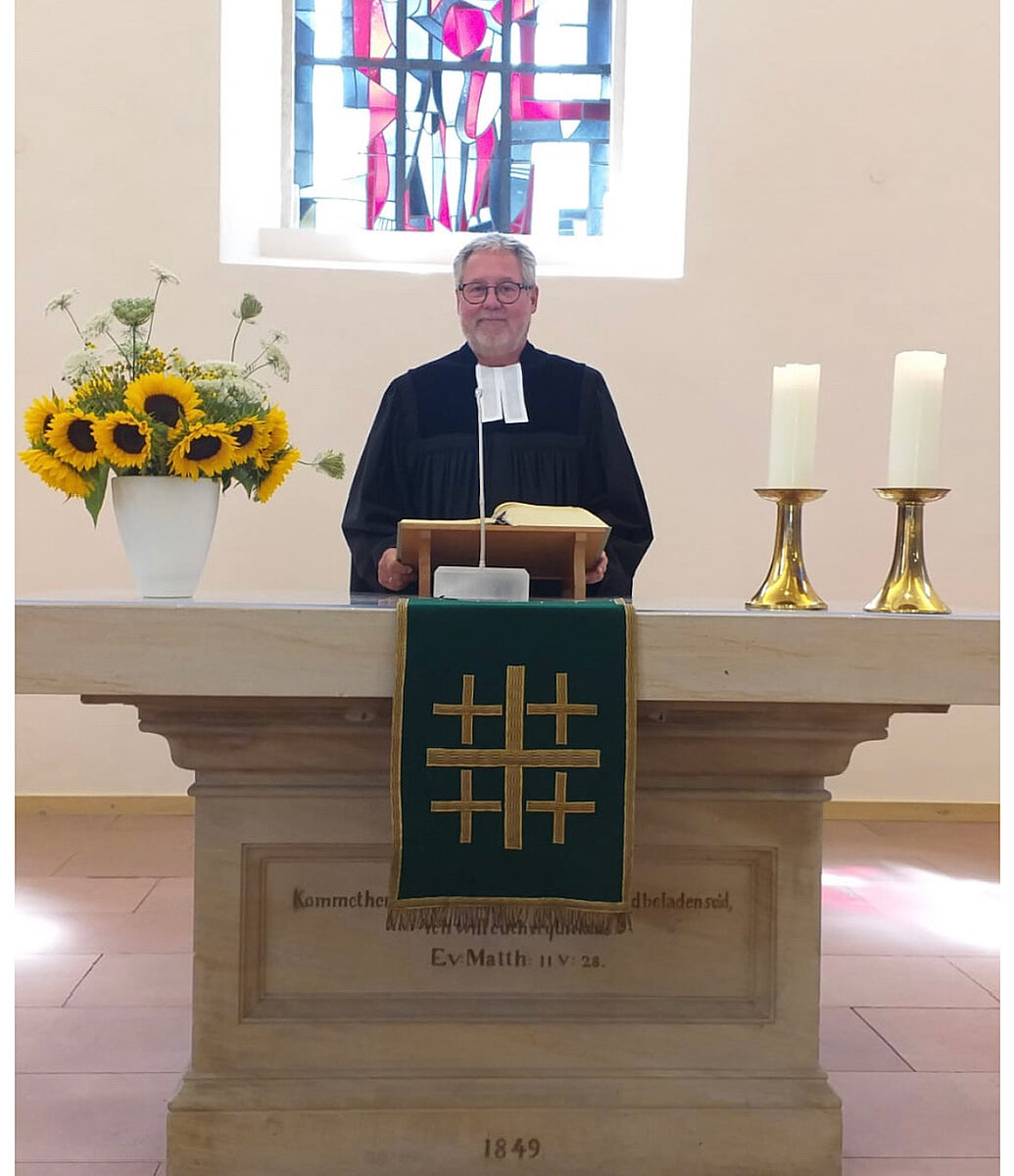 Diesen Dienst übt nun auch der in Mosbach Baden gebürtige Peter Horn aus, der schon seit vielen Jahren in Germersheim zuhause ist. Der 64jährige lernte schon als Berufssoldat die Arbeit der Militärseelsorge schätzen und engagierte sich auch dort. Unter anderem bei der ökumenisch veranstalteten internationalen Soldatenwallfahrt nach Lourdes. Dabei begegnete er immer wieder Soldat*innen, die ungeachtet ihres Verhältnisses zur Institution Kirche, offen für Glaubensfragen waren und gerade in Krisenzeiten nach Gott fragten. Es gab deshalb kein langes Zögern, als Pfarrer Oliver Beckmann ihn fragte, ob er sich einen Dienst als Lektor vorstellen könnte. Horn, inzwischen auch Presbyter der protestantischen Kirchengemeinde und im Frühruhestand, sagte gerne zu. Seit vielen Jahren engagierte Peter Horn sich nun als Lektor, hielt Gottesdienste in der Versöhnungskirche, aber auch Auferstehungsfeiern auf dem Germersheimer Friedhof oder „närrische Gottesdienste“ in der Karnevalszeit, gemeinsam mit dem Karnevalsverein Germersheim. Peter Horn liegt daran, dass Menschen die christliche Botschaft wirklich verstehen und in ihr eigenes Leben integrieren können. Am Sonntag, dem 10. Juli 2022, wurde er im Rahmen eines feierlichen Gottesdienstes in der Versöhnungskirche in Germersheim von Dekan Dr.Michael Diener ordiniert. Die Pfarrerinnen Melanie Dietrich und Christine Klein-Müller, die ihn in den vergangenen Jahren der Ausbildung begleitet haben, wirkten ebenfalls mit.